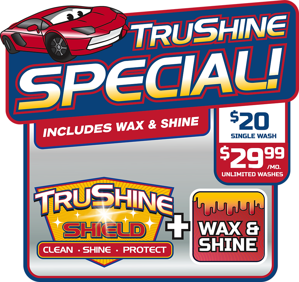 - At TruShine, we pride ourselves in using industry-leading technology that delivers consistent quality, leaving you with a clean and shiny car each and every time you wash. Our state-of-the-art wash tunnel is designed with you and your auto in mind, providing a better wash experience. Unlike common conveyor belt systems, which are known to harm or damage vehicles, TruShine uses a rail system to ensure a smooth and even wash performance. All locations are also equipped with the latest tag recognition software available, so you can say "goodbye" to window stickers.